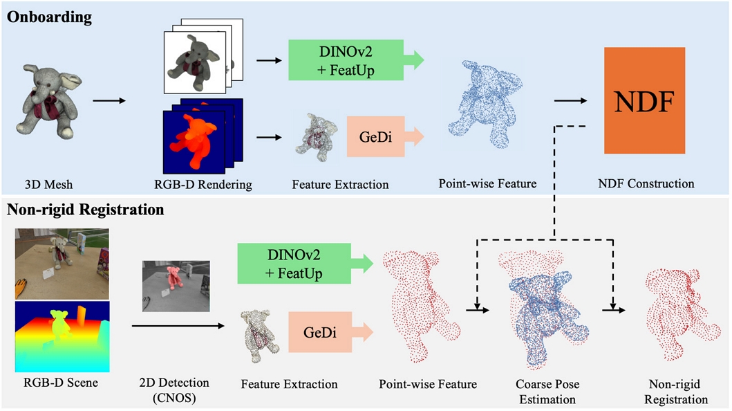 In this paper, we present a framework for non-rigid alignment between a canonical 3D mesh of a non-rigid object and a single RGB-D image in a category-agnostic ...